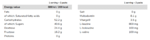 - Recommended dosage: take 1 or more single-dose packs per day, according to the athlete’s needs.