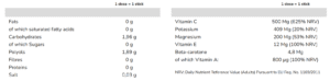 Rich in Vitamins:Â High dosages of Vitamin C (625% NRV) and Vitamin E (100% NRV) for antioxidant and vitality support.