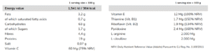 - Constant energy: with differentiated release carbohydrates (oat flour, maltodextrin, Vitargo®).